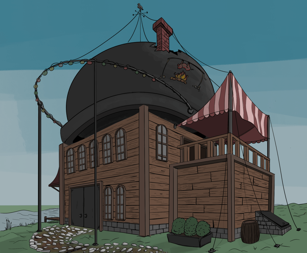 Nie zapomniałem ani o Was, ani o Gopełku i perypetiach małego robaka. Kolejny odcinek już napisany, tła scen narysowane, zostało mi to wszystko teraz animować i podłożyć audio, innymi słowy jeszcze trochę mi to zajmie… wybaczcie. Poniżej nowa lokalizacja gdzieś w Gopełkowym Świecie (Prażony Prosiak pod Dziurawym Kotłem).